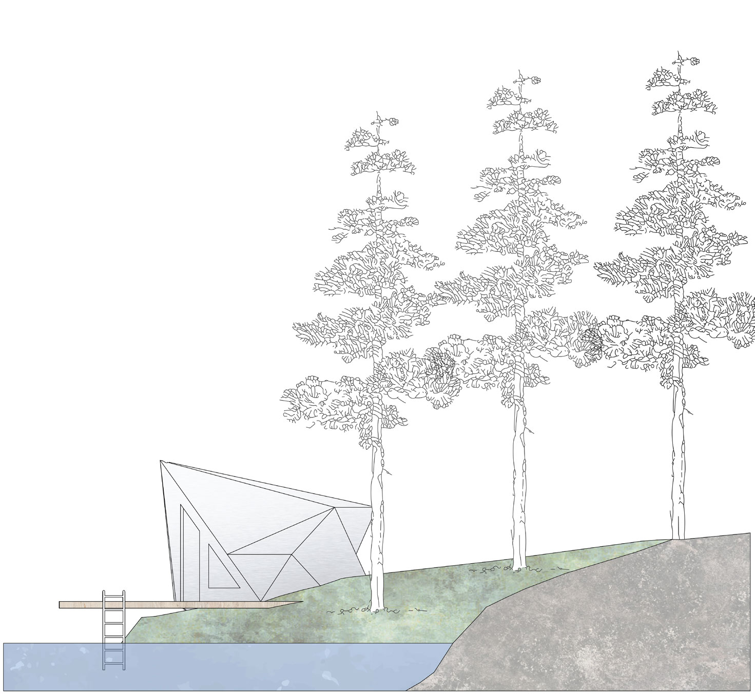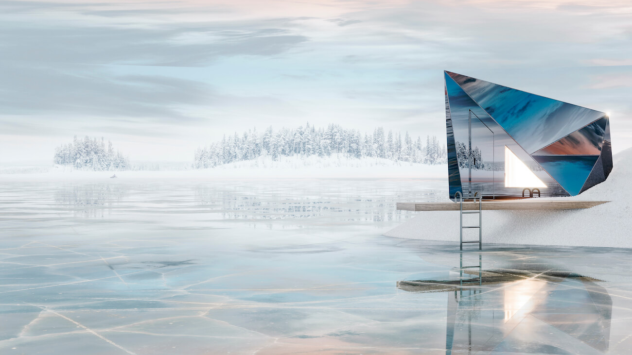 At the northern end of the island hidden and remote, is the “Caribou Black Diamond”, an extraordinary, diamond-shaped sauna with a shiny black facade. Guests can round up the once in a lifetime sauna experience with a natural swim in the crystal-clear lake or a relaxing bath in the outdoor wood heated hot tub.